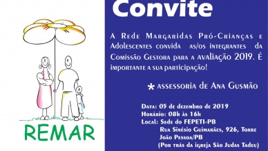 Remar avalia 2019 28 de novembro de 201928 de novembro de 2019Remar Comentários A Rede Margarida Pró-Crianças e Adolescentes da Paraíba (Remar) realiza seu encontro de avaliação anual, com um olhar para a análise da real situação dos [...]