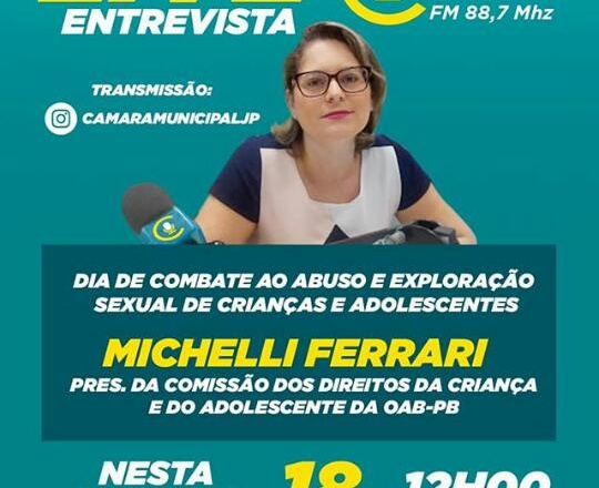 Nesta segunda (18), live michellicom Michelli Ferrari, presidenta da Comissão dos Direitos da Criança e do Adolescente, da Ordem dos Advogados do Brasil (OAB-PB), que tem como pauta “Quais foram as experiências que formaram base de seu pensamento sobre esse assunto?”