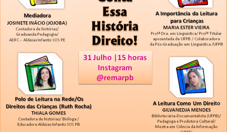 A celebração dos 30 anos do ECA continua. Nesta sexta (31) acontece a Live “Conta Essa História Direito!” , às 15 horas, na programação do Festival Artistas e os 30 anos do ECA, pelo Instagram da @remarpb