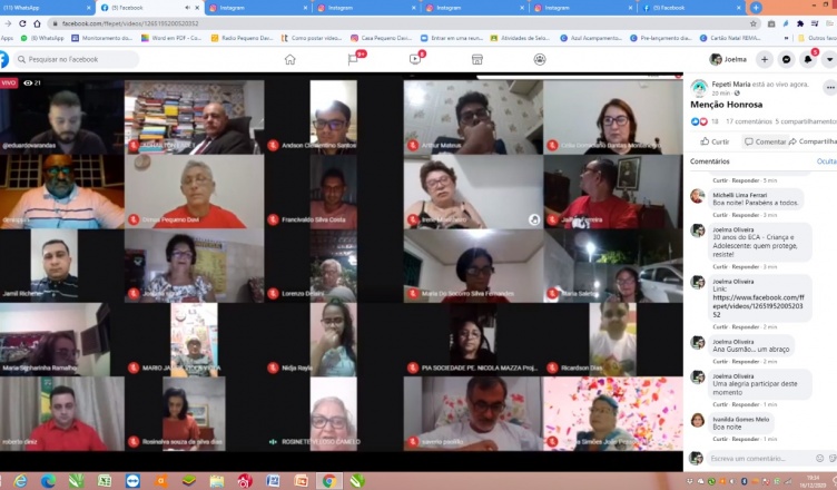 Registro da live que marcou o encerramento da programação que celebrou os 30 anos do ECA. Foi um momento de apresentação das pessoas que foram lembradas na “Menção Honrosa” das 30 indicações (15 pessoas físicas, 15 pessoas jurídicas) e as pessoas físicas in memoriam. Menção Honrosa pela defesa dos direitos das crianças e adolescentes.