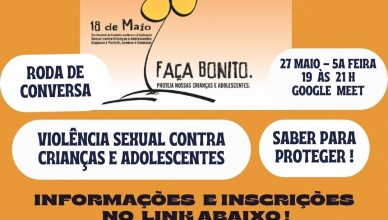 Roda de Conversa: Violência Sexual Contra Crianças e Adolescentes 20 de maio de 202120 de maio de 2021Remar Comentários 🌻Neste mês de maio, várias atividades estão na agenda estadual dos eventos acerca da temática da violência sexual contra crianças e adolescentes. São [...]