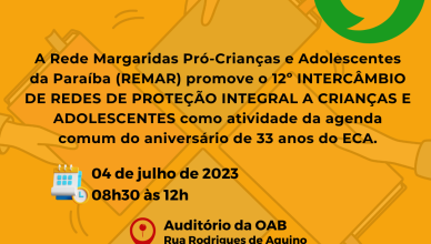 12º Intercâmbio das Redes 26 de junho de 2023Remar Comentários A Rede Margaridas Pró-Crianças e Adolescentes da Paraíba (REMAR) promove o 12º INTERCÂMBIO DE REDES DE PROTEÇÃO INTEGRAL A CRIANÇAS E ADOLESCENTES como [...]